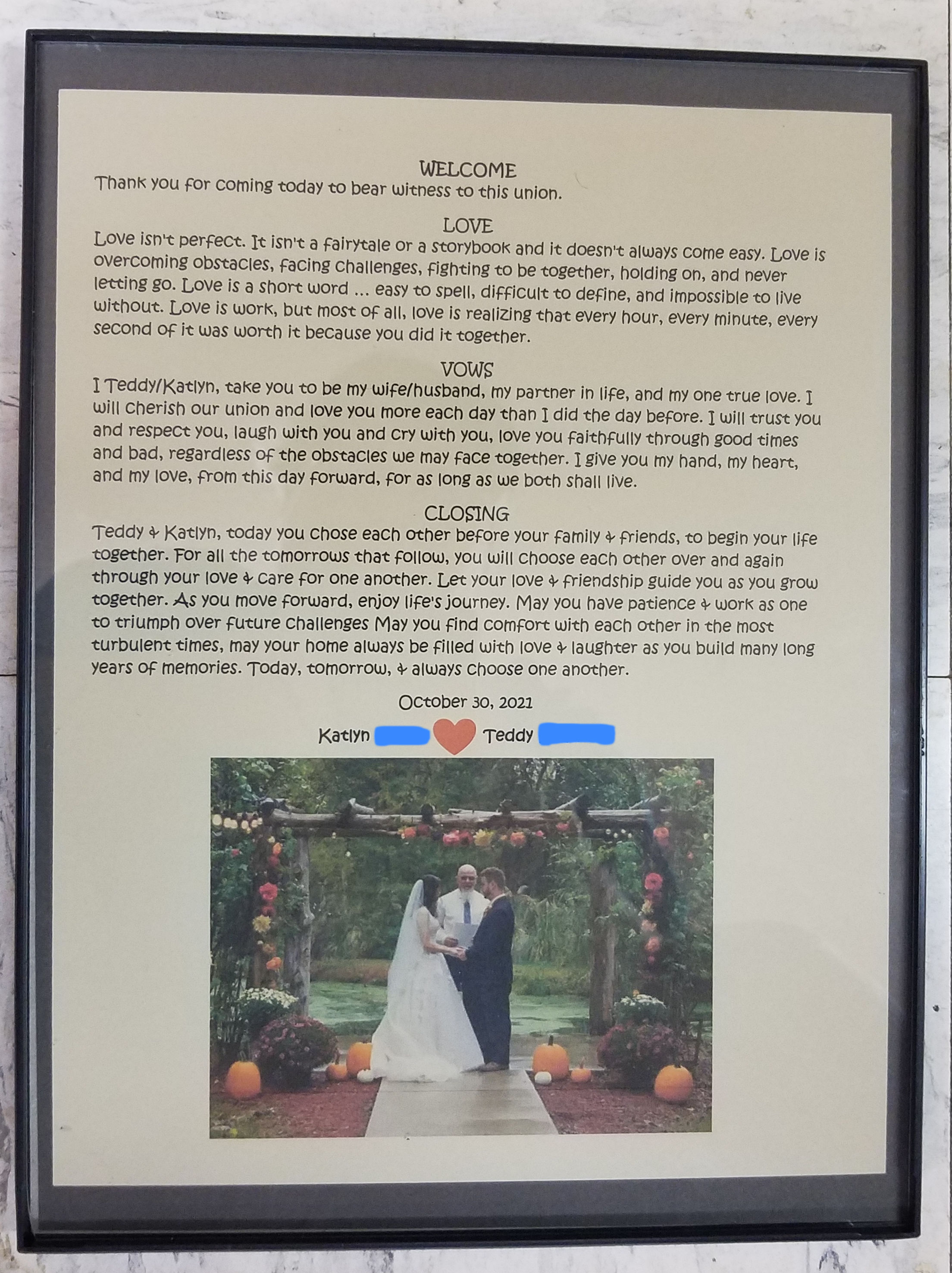 We can make personalized items for weddings & anniversaries. Contact Us